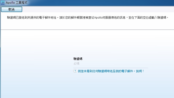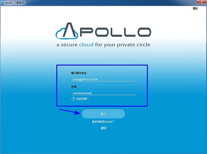 ▼當完成Apollo Cloud設定後,以後登入主機只要打上email帳號就可以,而不用再重新搜尋設定!!