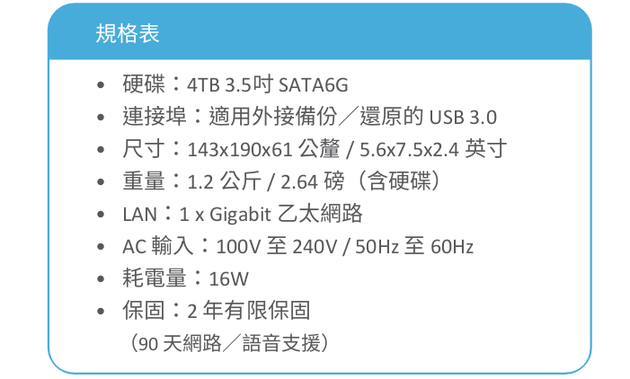 ▼以下Apollo Cloud的規格細節,透過資料可以看到,整個Apollo很輕巧,連同4TB的硬碟也只有1.2公斤。