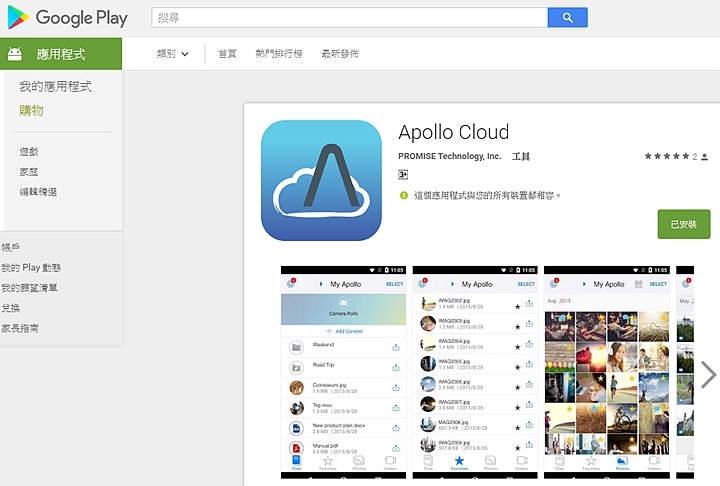 2.手機行動版,在手機的APPLE store或是Google Play商店,下載"Apollo Cloud"這個APP軟體。