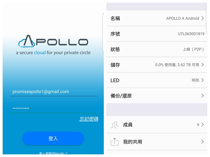 尤其,Apollo Cloud提供多種用戶端軟體,從WINDOWS到MAC,從APPLE IOS到ANDROID,通通都可以使用,涵蓋目前最主流的操作環境,讓Apollo Cloud使用上更便利,而快速分享的功能,讓愛拍照的我,可以快速讓朋友隨時瀏覽我拍照的作品,實在是現代資訊族不可缺少的小幫手!!