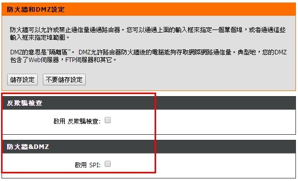 2.檢查IP分享器裡面的防火牆設定中,是否有SPI或是反欺騙檢查的選項,必須關閉才能使用(D-LINK機種會有)。