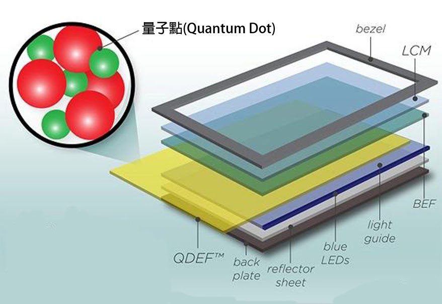 ▼ 量子點顯示技術,可以讓顯示器的 RGB(紅綠藍) 三色平均輸出,而不會像傳統的 LCD 顯示器,會有藍色強,紅色弱的問題,也是因為這樣的技術,所以可以使顏色更精準,色彩表現更飽和和艷麗 。