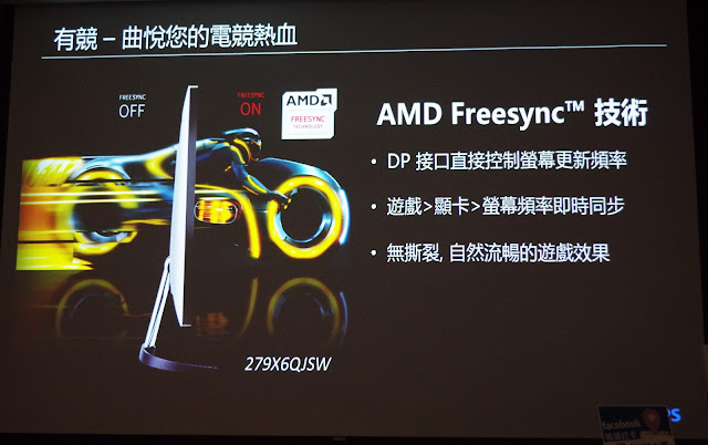 ▼ Philips 279X6QJSW 曲面液晶顯示器可以搭配AMD Freesync 技術,可以讓遊戲、顯示卡和螢幕的頻率同步,讓你玩遊戲不會卡頓,畫面會非常流暢且無撕裂感。