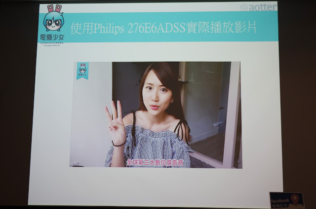 ▼ 現場有利用 Philips 量子點顯示器 ~ 276E6ADSS 撥放影片,畫面表現順暢。大家如果有興趣看影片也可以連接網址 : https://www.facebook.com/aottergirls/videos/939111199549440/ 來看看你家螢幕是否表現順暢。
