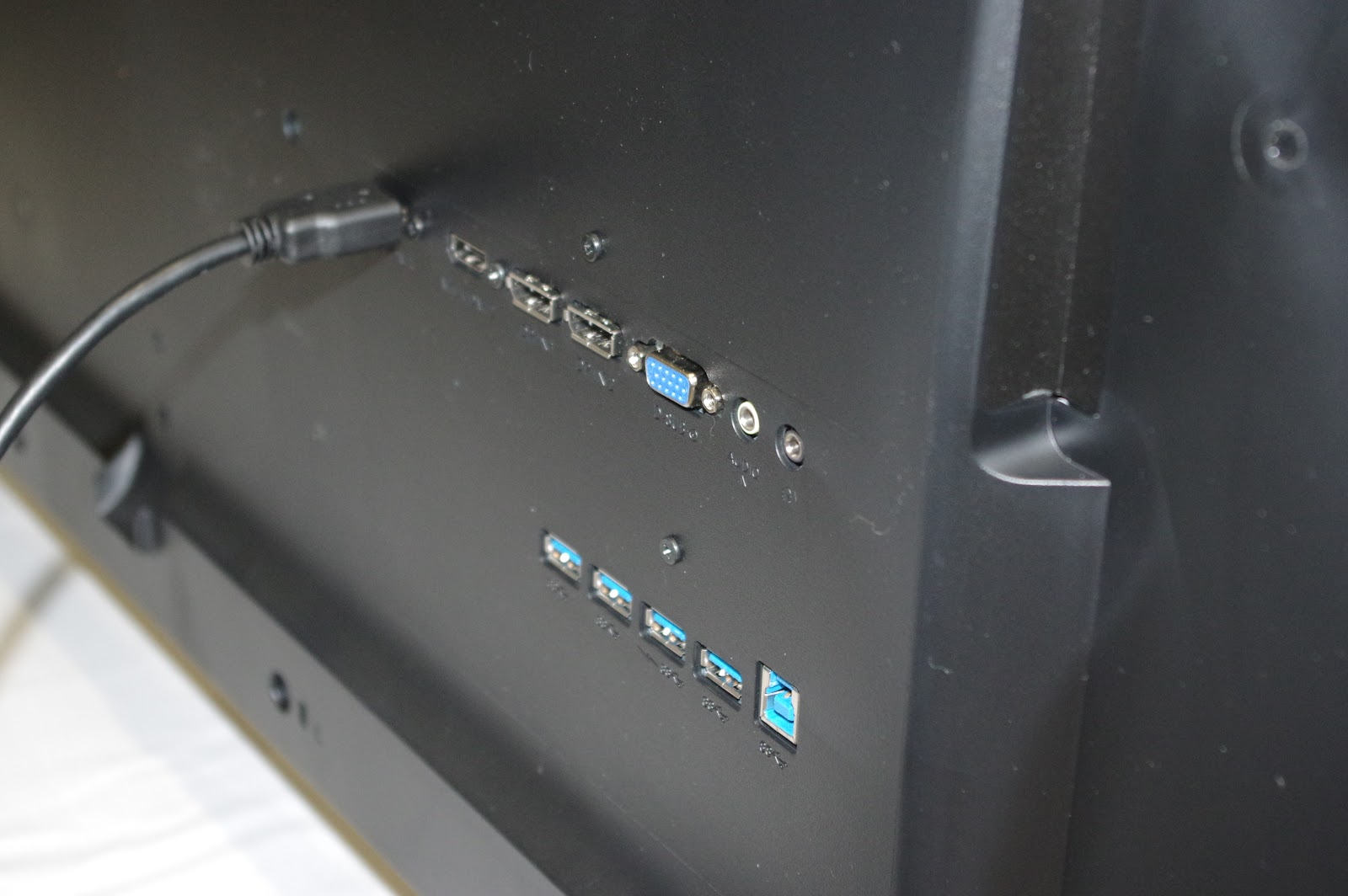 ▼ Philips BDM4350UC 4K 液晶顯示器背面的輸出入端子接口,可以看出有 2 個 HDMI 接口、一個 D-Sub、音源輸出入接口、4 個 USB 3.0 接口和一個網路接口。