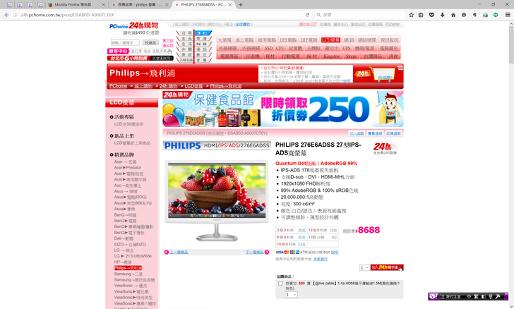 IPS的螢幕又有全球唯一量子點科技的27吋顯示器,還有99%Adobe RGB,我想一定超貴的天價吧....