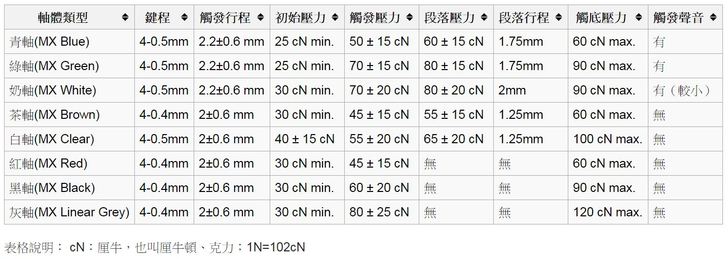 如果是一開始入門,其中青、茶、黑、紅軸是比較常見的,每個軸的特性如下