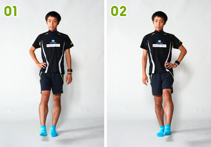 抬起其中一邊腿,膝蓋彎曲,注意身體要維持平衡不能傾斜,大幅甩動你的單腿。