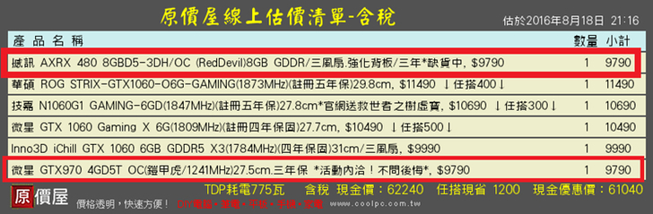 讓我們來看看台灣的地區的銷售價格,撼訊這次在RX480的訂價上是最符合許多玩家們的期待,從國外的售價轉換成新台幣並沒有相差過多的現象,公版卡只賣$8990(含稅),幾乎都是呈現缺貨的現象,而RED DEVIL 紅魔RX480也是一樣賣到缺貨,身為POWERCOLOR性能旗艦自然設計上就不會跟公版卡一樣普通,三風扇設計、可調式雙BIOS、最高時脈直接拉至1330,部分測試可與NVIDIA GTX970 相互競爭,售價比公版卡多個$800元其實許多玩家都能接受(看看缺貨的現象就知道)。但面對NVIDIA新推出的GTX1060各家旗鑑版本僅不到千元的差距,到底效能上差多少呢? 等到近期內手上拿到GTX1060後可能會再來比較一輪便能知道這差距到底是差在哪兒,該如何做選擇會比較好。