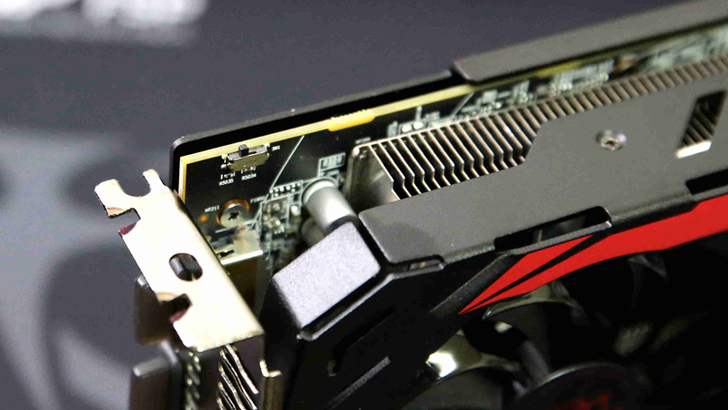 這次在RX480也將CrossFire的端子給取消掉,可直接透過軟體來進行多重GPU的運算,而旁邊那個小小的滑動開關則是 RED DEVIL RX480 上特有的 Dual BIOS設計,可自行切換顯示卡的模式,分別為靜音模式與TURBO模式。