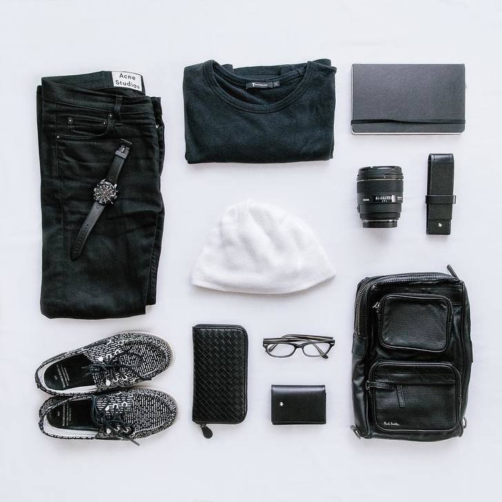 例如買了一件白色的帽子,為了襯托出它的與眾不同,周圍放置了和主角完全不同色調的物品,物品的間隔距離差不多,從高處往下拍可以看見所有物品的全貌。