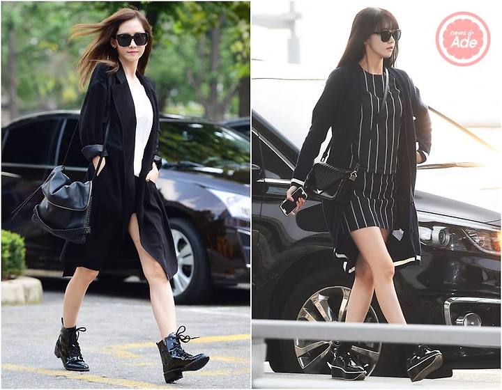和甜美外表相反,意外在私下穿搭中常看見黑色穿搭的潤娥,造型上的細節就不用多說,但大型的肩背包讓它看起來更有型,而小巧的方型包則在黑色穿搭中多了一點可愛的成份