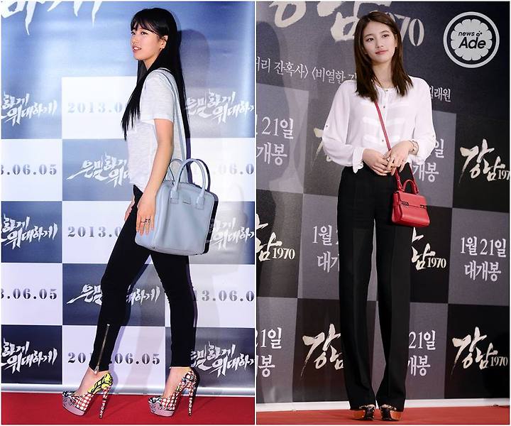 簡單的白色T-shirt配上大型的肩背兩用包,經典的版型及淡藍色,凸顯了秀智當天休閒的裝扮。換上一襲白色襯衫的秀智,配上精練的西裝褲,斜背著呼應唇彩的大紅色迷你包,替秀智整體成熟、優雅的造型下了最好的註解~~