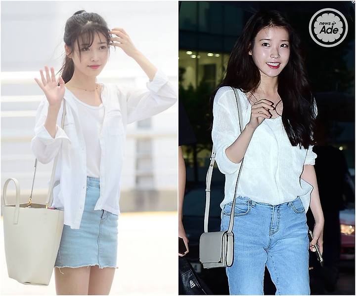 平時私下穿搭就比較簡約、清新的IU,白色襯衫配上牛仔褲簡直就是她的定番!在機場的大包包強調實用性,而慶功宴上的簡約迷你包,米白色與精練的外型替IU增添一種成熟美
