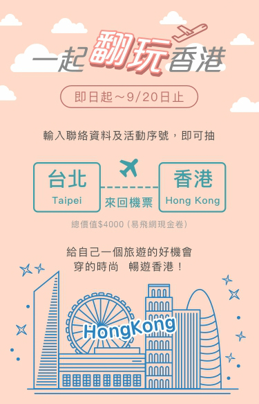 即日起~9/20日止,下載「HOKI穿天氣」於APP內輸入活動代碼「17hk」,即可抽台北-香港來回機票,讓你穿的時尚暢遊香港!