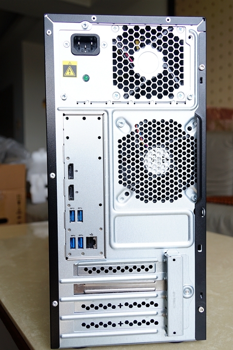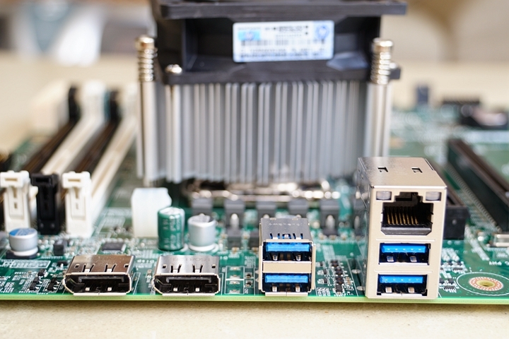 ▼在HPE ProLiant ML10 Gen9伺服器背後的I/O介面上、可以看到下面有4個USB 3.0連接埠,1個Gigabit RJ-45網路埠,以及2個DisplayPort顯示介面,非一般常見的D-SUB或是DVI規格的介面。