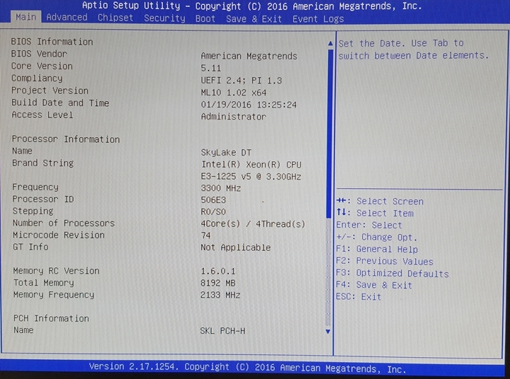 ▼HPE ProLiant ML10 Gen9的白底藍框BIOS介面風格,相信大家都不陌生,還是和最常見一般電腦BIOS一樣,在這MAIN 首頁上,可以看到HPE ProLiant ML10 Gen9這台相關的硬體規格,CPU型號,記憶體容量多少..等等資訊。