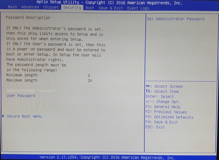 ▼在security 選項中,可以設定進入BIOS的密碼,避免讓非相關人士接觸或誤設定裡面的選項。