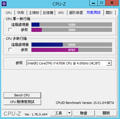 ▼在CPU效能評比上,CPU-Z跑出單一執行緒1598分,而多執行緒則跑出5958分,這個和I7-6700K CPU也才差兩千多分而以。