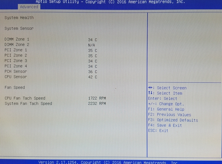 ▼在BIOS裡面除了基本硬體規格資訊外,也可以看到一些偵測值,像是CPU溫度,風扇轉速等等,讓你了解目前伺服器運作的狀況。