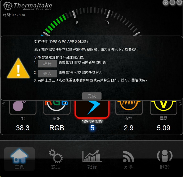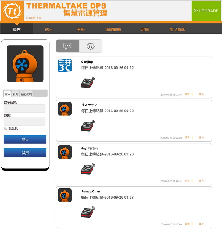 安裝好後第一次使用要註冊登入,雖然感覺有點麻煩,但後來才知道這設計是有必要的,因為可以在雲端的網路上看到你的資訊(你可以上傳資料,免費的),且到時用手機APP只要登入後就可以找到你這顆電源供應器!