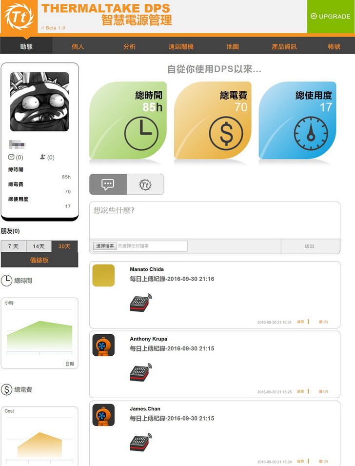 TT這顆Toughpower DPS G RGB 750W真的不錯,以規格來說該有的都有又金牌,小弟過他的程式看平時的運作效率都保持在88~90%都不錯,且全方面的資訊都可以記錄、甚至於上傳雲端方便查詢,使用者在外頭更可以即時得知遠端電源的使用情況,有任何問題也可以遠端關機,真的很讚