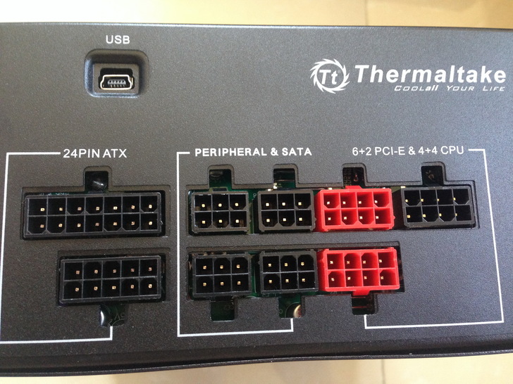 全模組化設計,不同的是多了一個USB插槽,包裝內有附連接線,可接在主機板上的USB以提供電源相關資訊