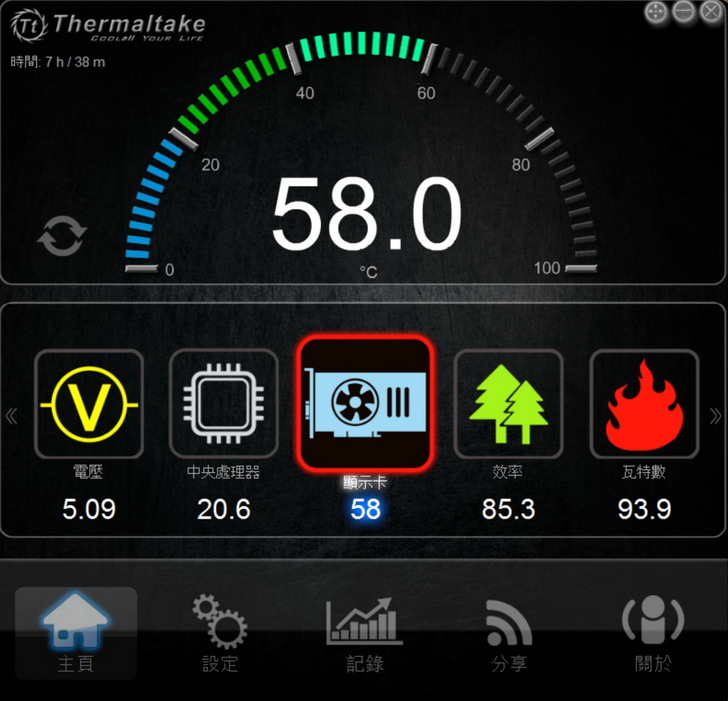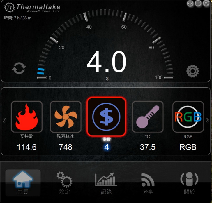 還有一個值得一提的是你設定電費之後,它會幫你計算你開機到目前花了大約多少電費,小弟設定電費為4元,以小弟的配備來說一小時大約花快1塊錢的電費,還能接受