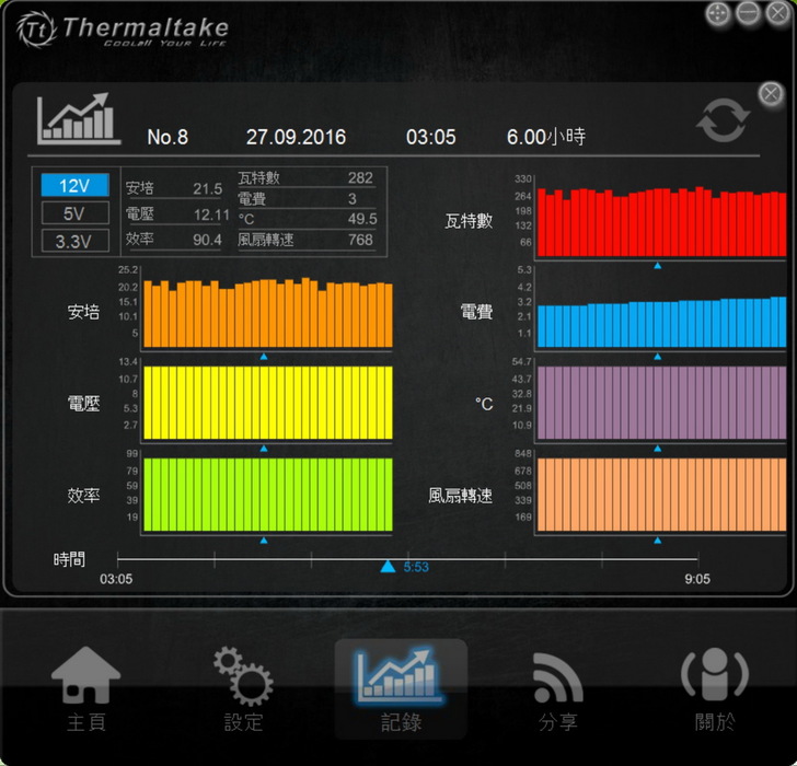 這邊小弟大讚TT這個程式,能提供給使用者相當多重要的資訊非常好,像是目前電源的情況、總耗電量、效率、處理器與顯卡的即時耗電等