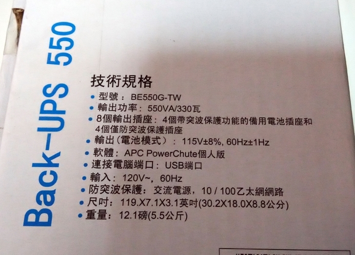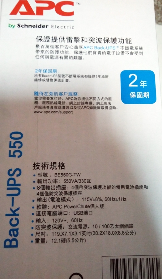 總而言之VS375C就被APC 550VA給取代啦,要換新的UPS了,以下就是APC 550VA UPS的開箱。