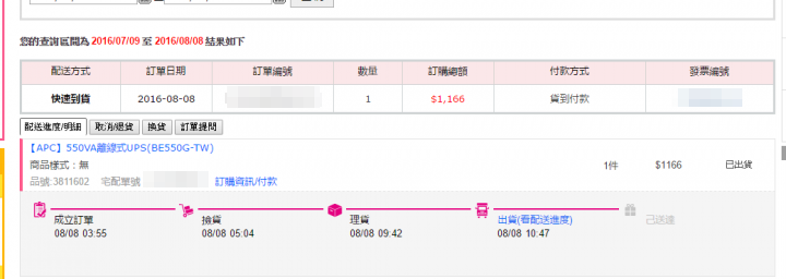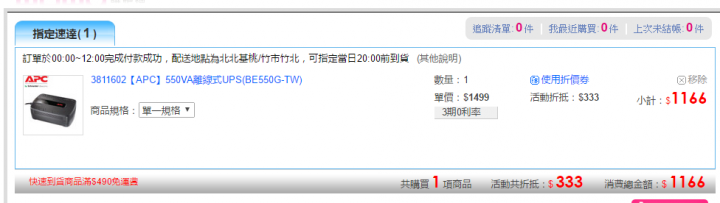 超棒的啦!某購物站活動期間有送$333折價券,折價下去後剩下$1166 就心動給他下單下去了,還有快速到貨真的超快就到了,8/8凌晨下訂單 8/8下午5點多就收到不過訂單狀態尚未更新,下面附上截圖。