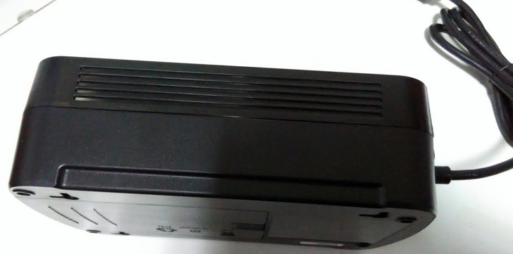 ▲上面四個"備用電池+突波防護"插座。黃色警語提示要先插上電池黑色負極線。
