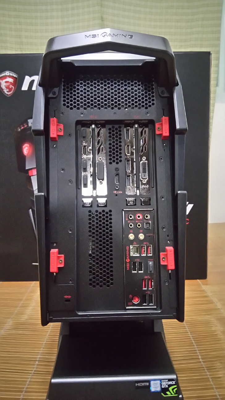 看到AegisTi背後的接口,真的是貨真價實的兩張1080顯示卡!