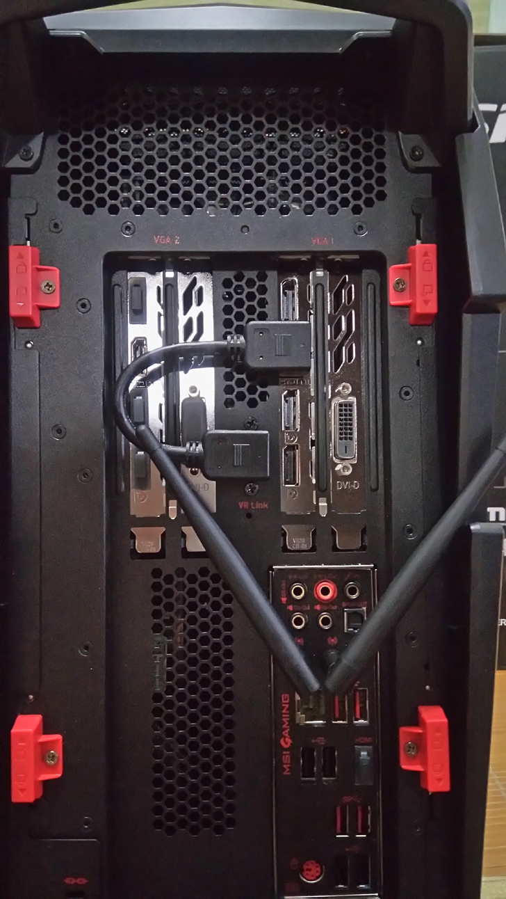 而後主機版用轉接頭做轉接的動作,可以讓日後VR實境的線材能延伸的更遠,甚至是以後去掉線材後,讓HDMI接頭在主機前方能夠讓訊號源更穩定,這是一個多棒的巧思啊!