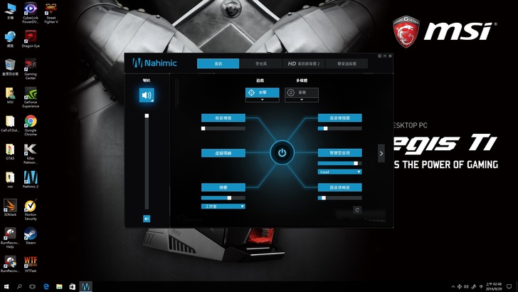 所以說,好的電腦配備能夠在你適時需要的時後給你非常強而有力的後援,而AegisTi具備上述以上的條件,不但能夠給你強而有力的後援,更能讓你在遊戲的戰場上擁有無限戰力!而實際體會過AegisTi之後,非常有感的是顯示跟音效上面,顯示方面不需要多說,兩張1080頂級顯示卡,如果在加上一個好螢幕,那可以說是不管玩任何遊戲都會非常滿足,而音效來說,配合上這次微星所使用的Nahmic2.0系統,在音效呈現上真的非常棒,尤其是在玩射擊遊戲時,那種重踩的腳步聲真的會比其它電腦所表現出來的感覺還明顯,而且非常清楚!對我來說,這真的是值得入手的一台好電腦!
