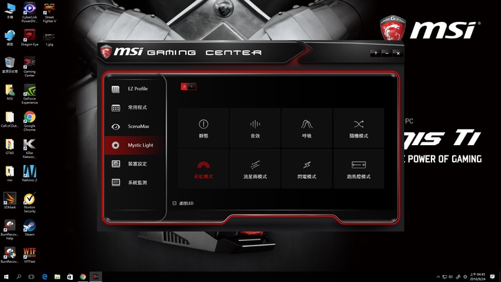 根據官方給的資料,Mystic Light是1600萬色的RGB色彩燈,而它也擁有八種模式可以讓玩家調整!