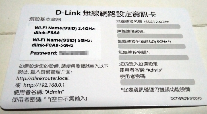 ▲前方貼有預設的WIFI SSID及密碼,跟前面"無線網路設定資訊卡"內容是一樣的。