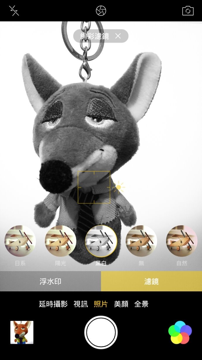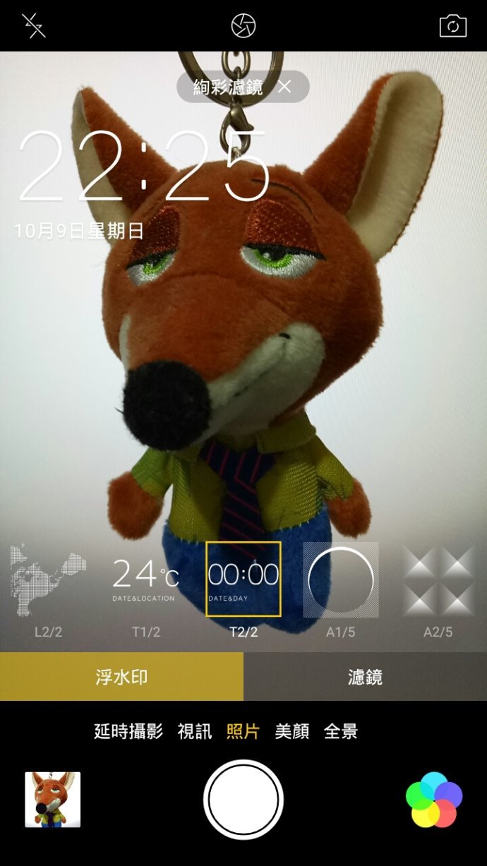 點右下角內建已經有基本的濾鏡與浮水印功能,其中浮水印的日期跟天氣會壓上現在的時間與天氣。