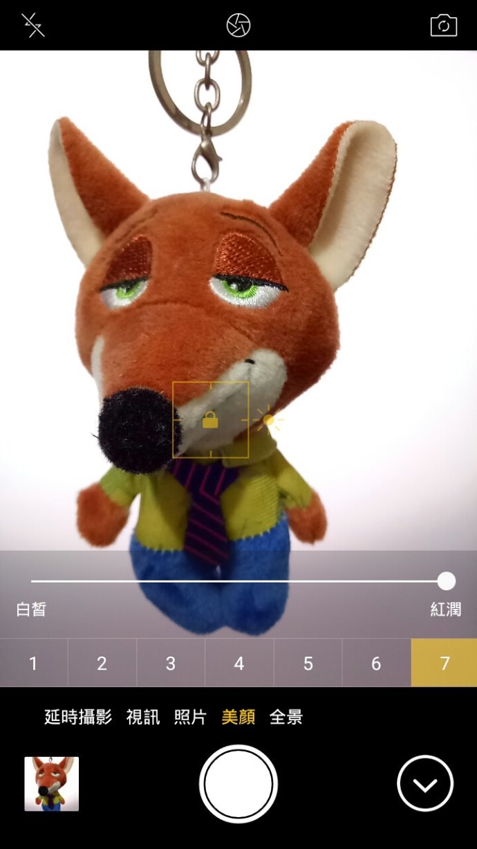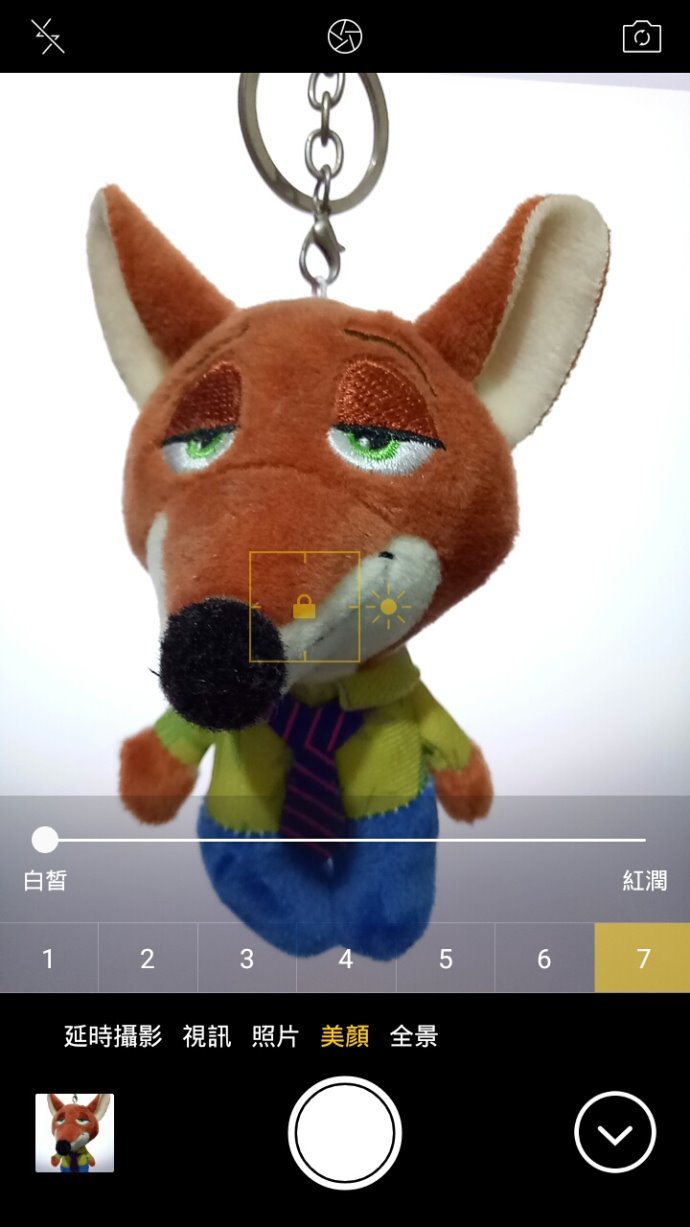 美肌總共分為七段,並且可以調整白平衡看是要白皙一點還是要紅潤一點,其實我平常拍照沒在用美肌…