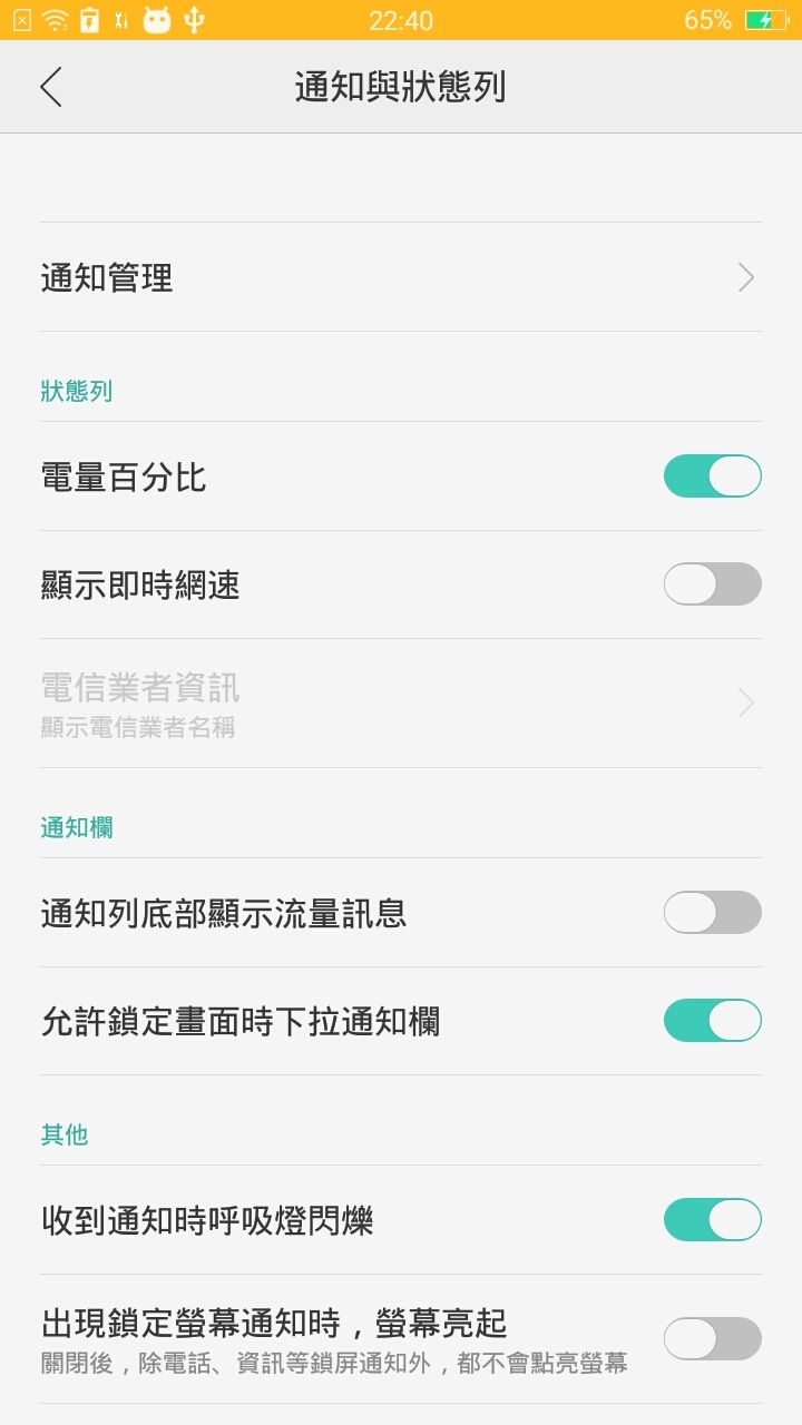 在通知列的部份把網速、流量這些也內建近來讓使用者可以方便的選擇要不要開啟