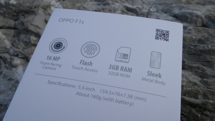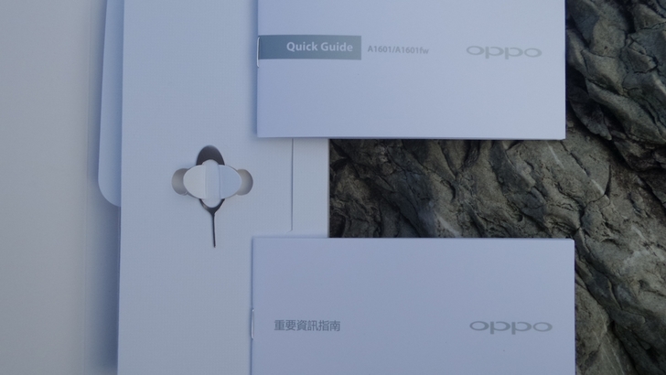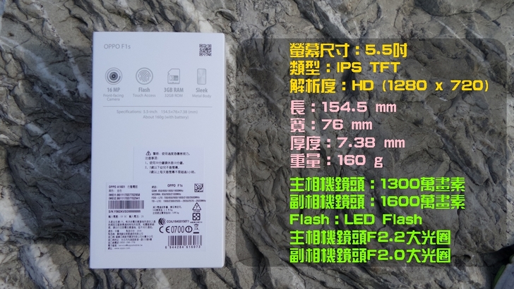 【▼】F1s包裝彩盒一貫採用oppo純白帶有鮮明的色澤,包裝相當精緻,蠻討小編的歡心,由於F1s在oppo產品線中不是定位於旗艦機,但從包裝這小地方就可以看出oppo對產品的堅持。