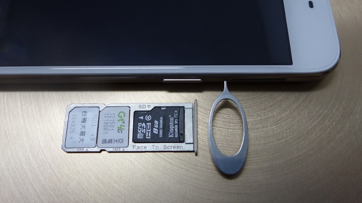 【▼】以小編來說,SIM1是主卡的位置擺的是台哥大的SIM卡,SIM2則是擺放亞太GT,最後再額外加上8GB的microSD記憶卡。