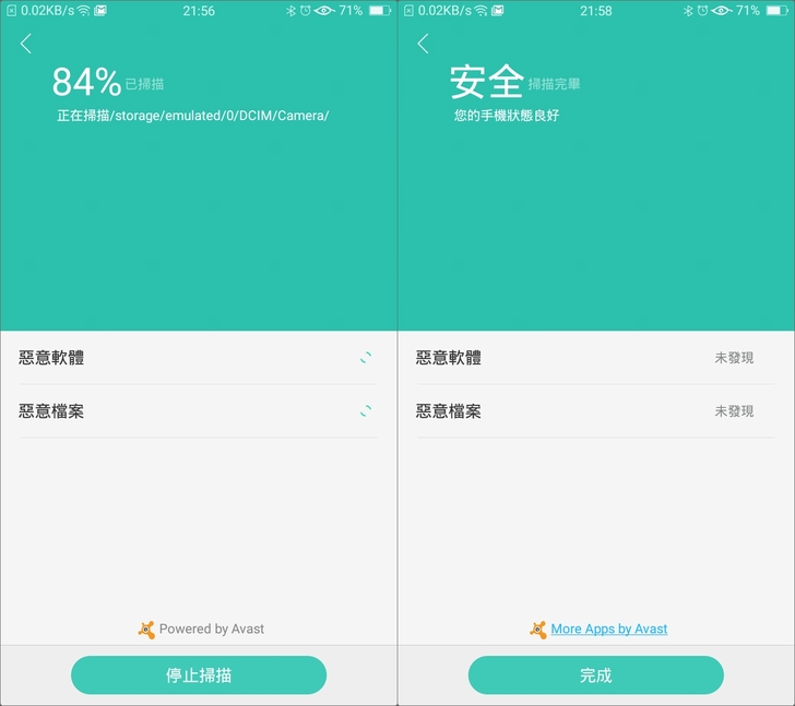 【▼】安全中心的病毒掃描是與國際大廠Avast合作,防護有一套,能針對惡意軟體或檔案進行刪除的動作。