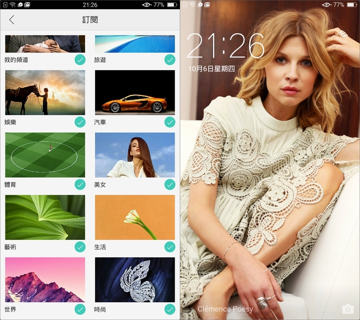 【▼】鎖定畫面雜誌訂閱的項目也是五花八門,小編是全選,因為精選的風景、美女看了就是賞心悅目。