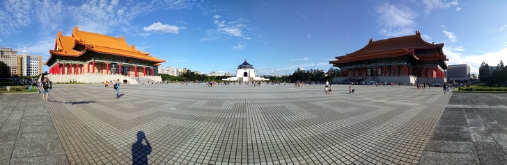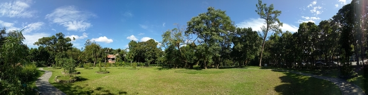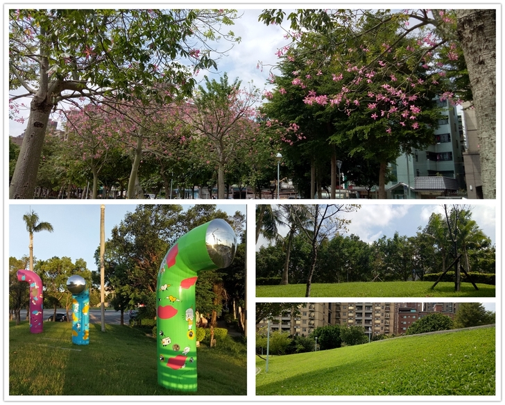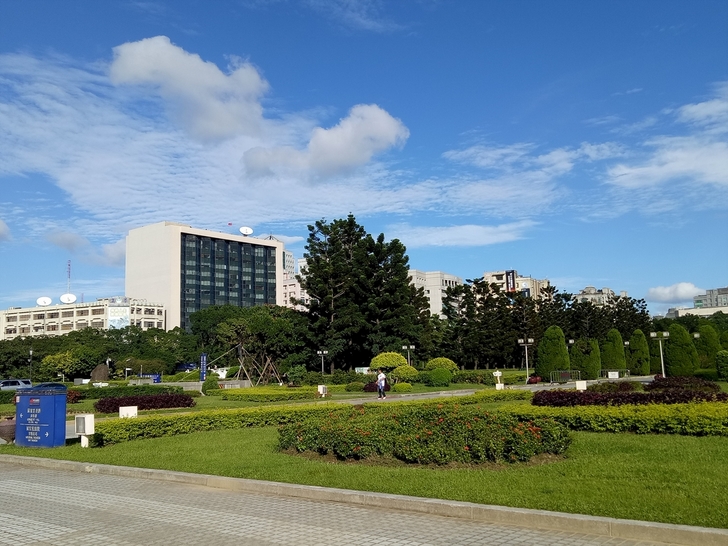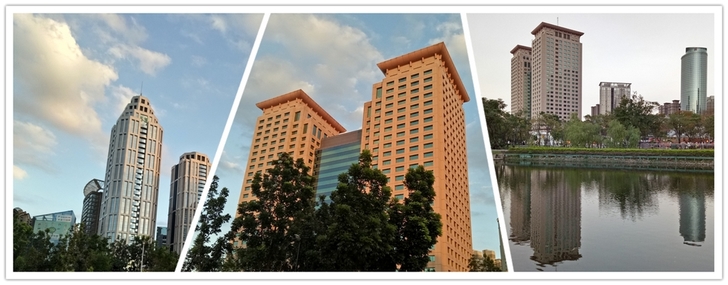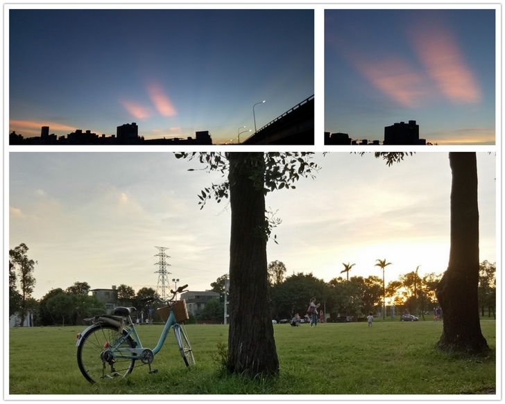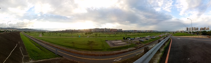 以F1s全景功能拍出河堤公園全景圖,小編拍得太廣角,幾乎呈180度,看起來偏圓,還以為在玩360度呢!建議不用太廣角,120度差不多。