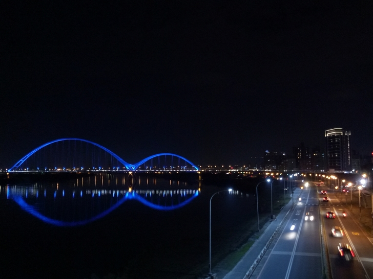 【▼】另一個角度拍新月橋,建議開啟F1s的專業功能,不然以自動模式拍不出車流的光影。