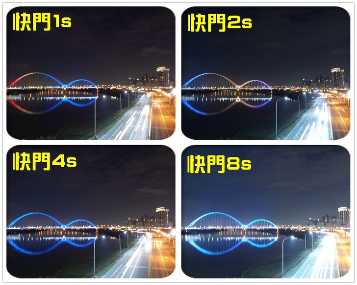 【▼】不同快門的拍照結果,個人覺得快門2秒最能掌握光影與暗部細節,大家覺得呢?