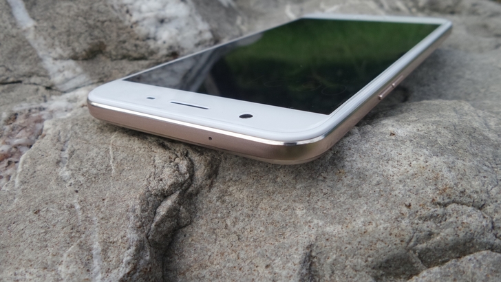 以外型來說,F1s只有「精緻」兩個字可以形容,背面全金屬的F1s真的很有質感,不論握持的手感還是細節處理的部分都非常到位,美感真的直逼旗艦機種。尤其極薄的指紋辨識與忽隱忽現的呼吸燈,加強了觸覺與視覺的感官,目前搭配的顏色有金色與玫瑰金,都是非常討喜的色澤,雙卡雙待與SD獨立卡槽一體成形,流線的機身外型真的沒什麼好挑剔的。倒是後置鏡頭沒有雙色溫LED來補光,白平衡會不夠柔和,是略為可惜的小地方。