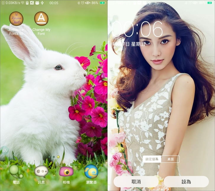 【▼】若只想保留主題的圖示,只更換桌布也行,設定時還會問你是想設定為鎖定螢幕的畫面還是桌面。