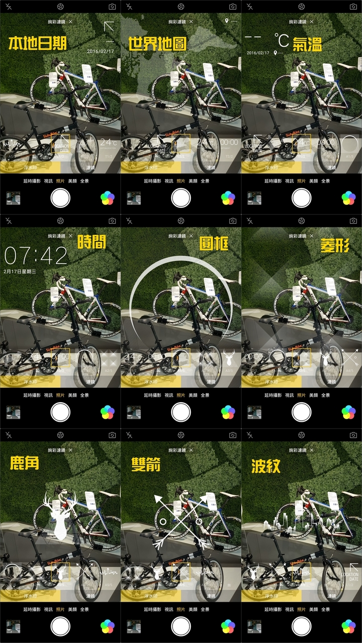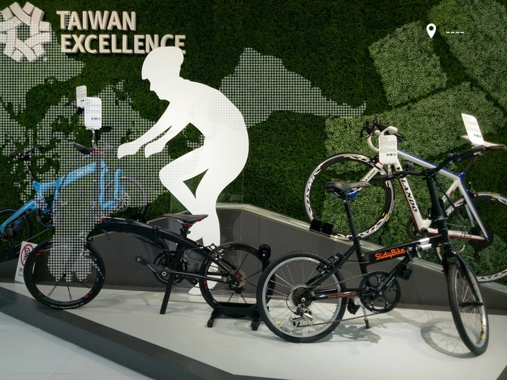【▼】圓山附近有個台灣精品館,裡面有很多新發明,像這台碳纖維的車身,輕到不可置信。前面有提到在F1s絢彩濾鏡中提供有九種的濾鏡效果,也提供了浮水印,像騎腳踏車就適合搭上一個世界地圖的浮水印,讓小折陪著你繞著地球跑。